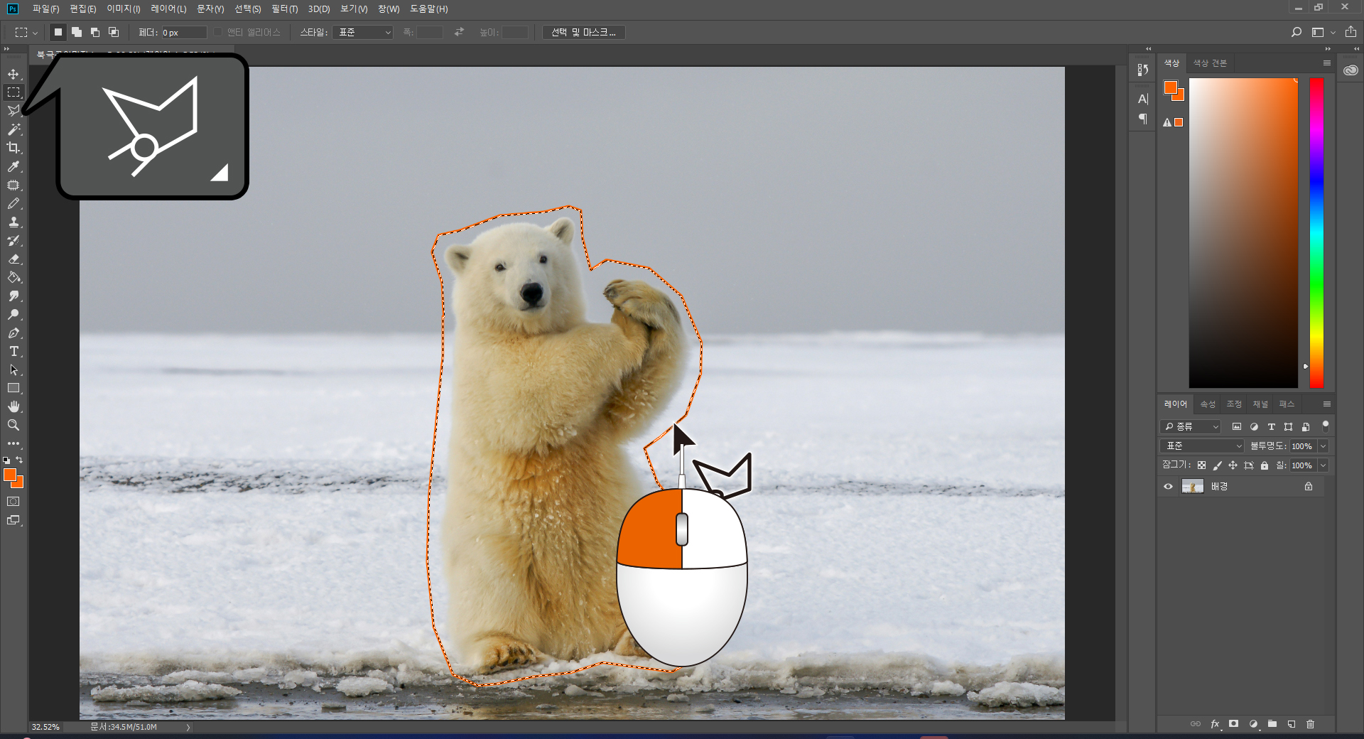 - 북극곰 이미지를 불러와 초벌 따기로 시작해 누끼를 땁니다.
