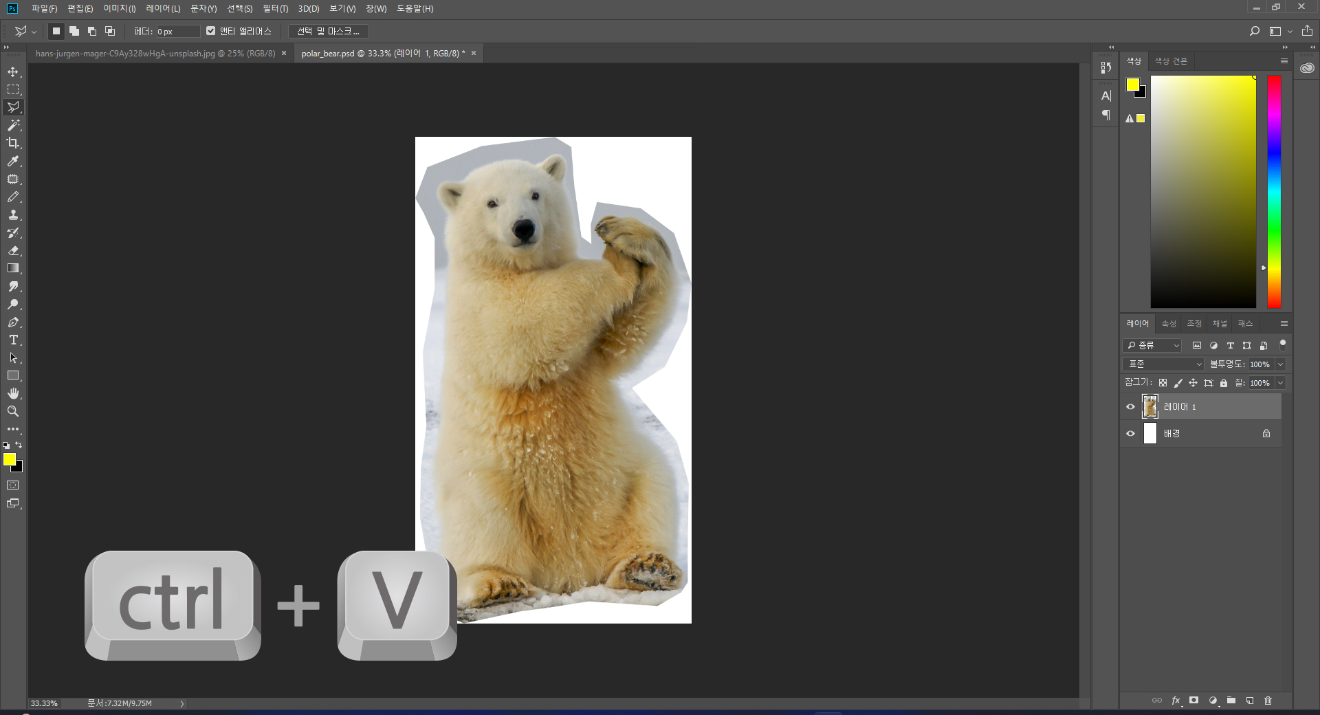 1. 북극곰 이미지를 불러와 누끼다기