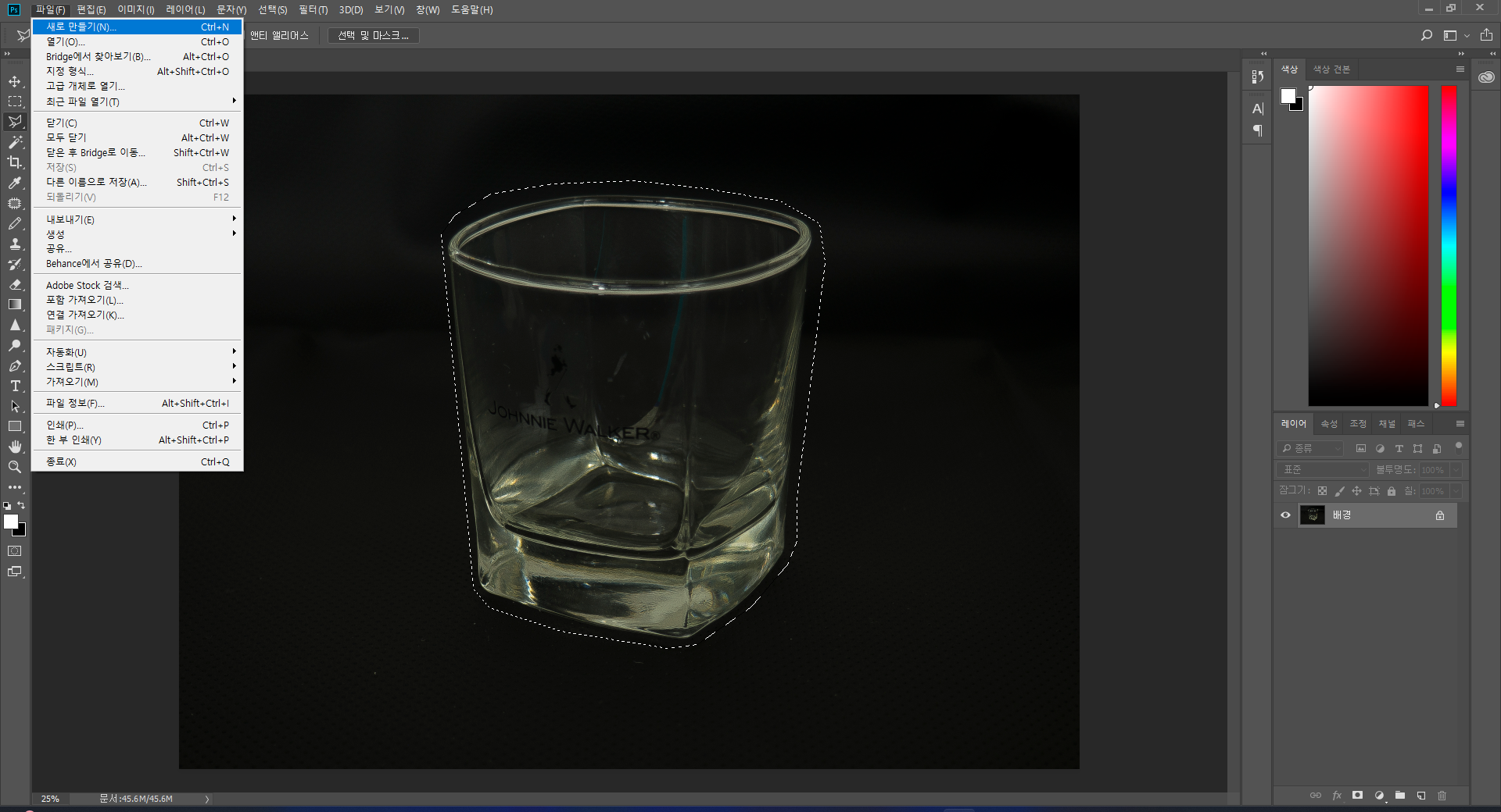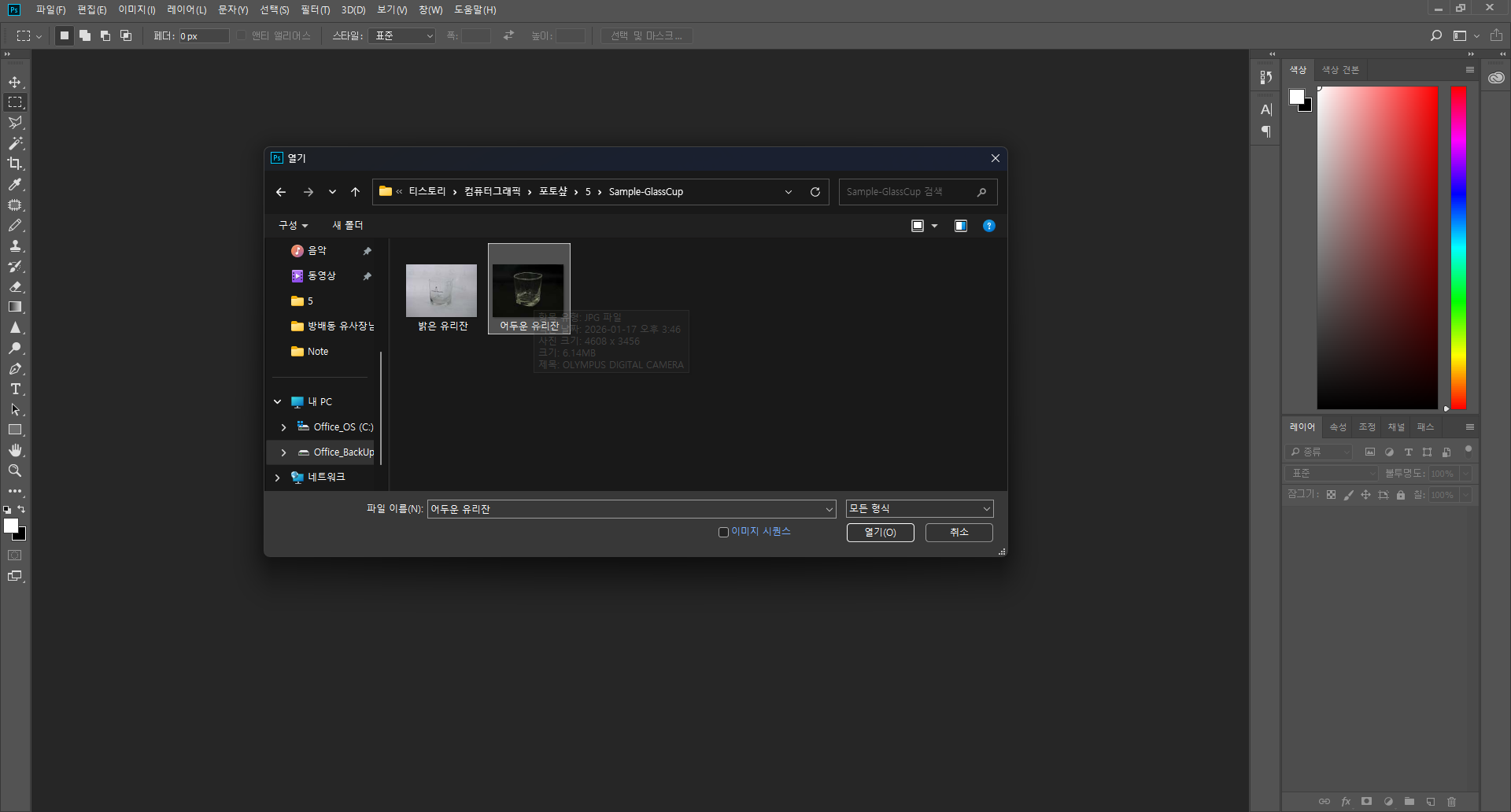먼저 제공된 유리잔을 [파일]에 [열기]를 눌러 [어두운 유리잔] 이미지를 불러옵니다.