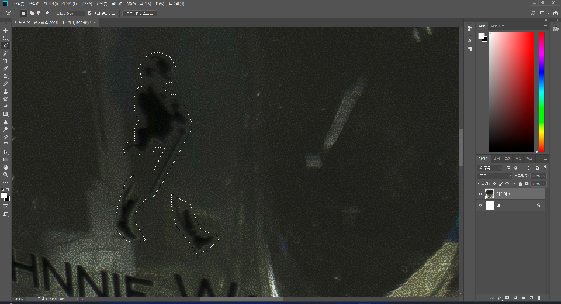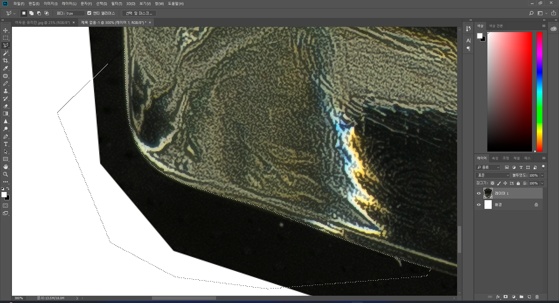 다음 단계에서는 정밀한 누끼 작업이 필요합니다. 화면을 확대하여 세밀하게 누끼작업을 통해 배경을 제거해 줍니다.