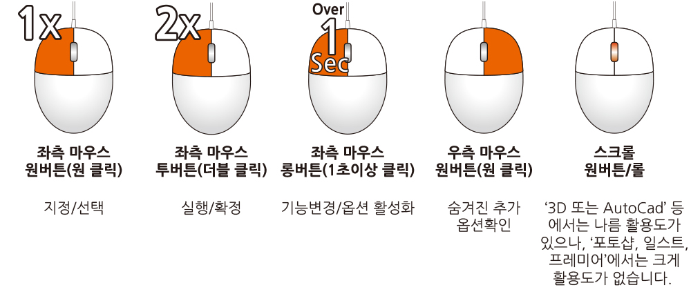 본 내용에 앞서 마우스 사용법에 대해 간단히 안내 하겠습니다.