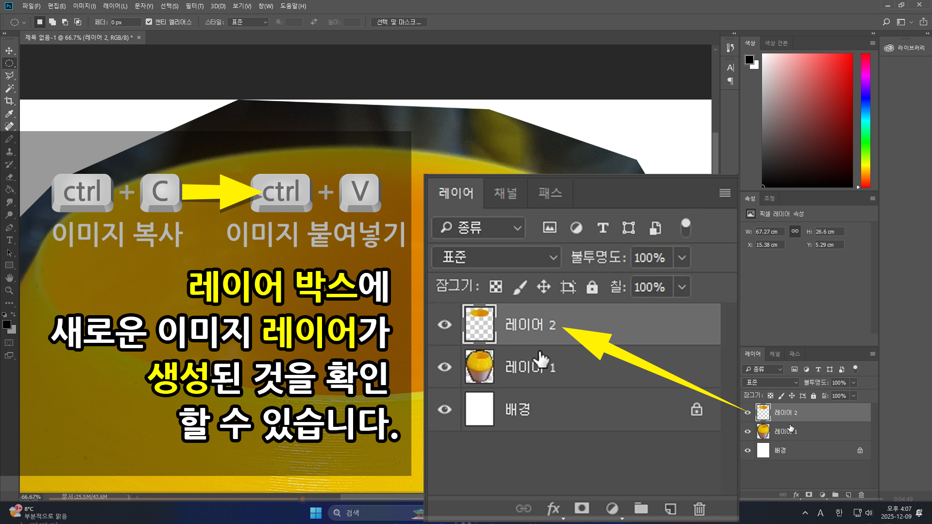 또, 키보드 자판(버튼) [ctrl+C], [ctrl+V]를 통해 복사된 새로운 이미지 [레이어]를 추가로 확보합니다.