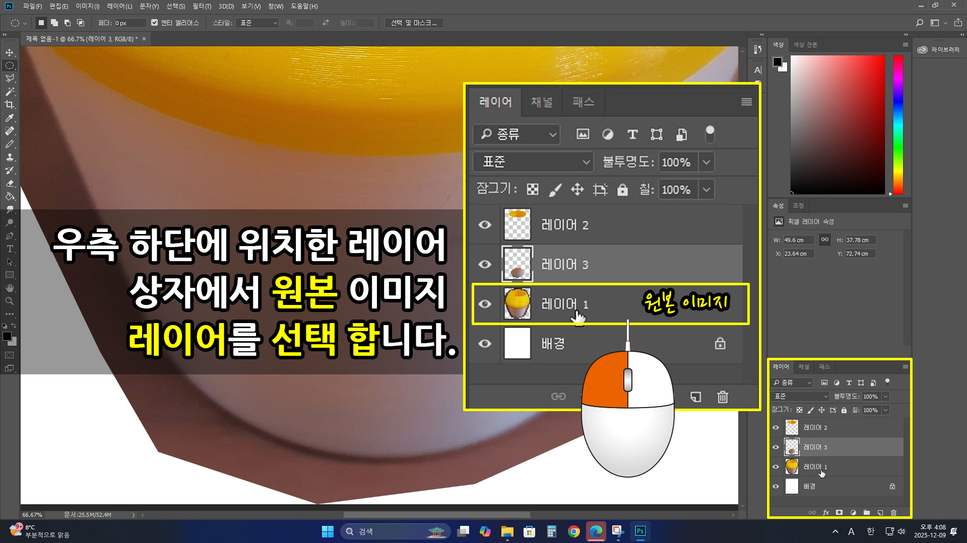 위와 같이 [레이어] 상자에서 원본 이미지 [레이어]를 선택합니다.