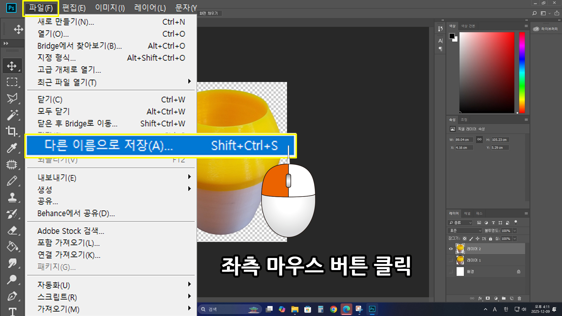 끝으로 상단 [메인 메뉴바]에서 [파일] > [다른 이름으로 저장] > 적당한 위치 지정 후 저장 버튼 클릭.