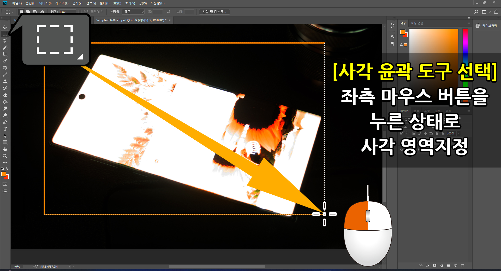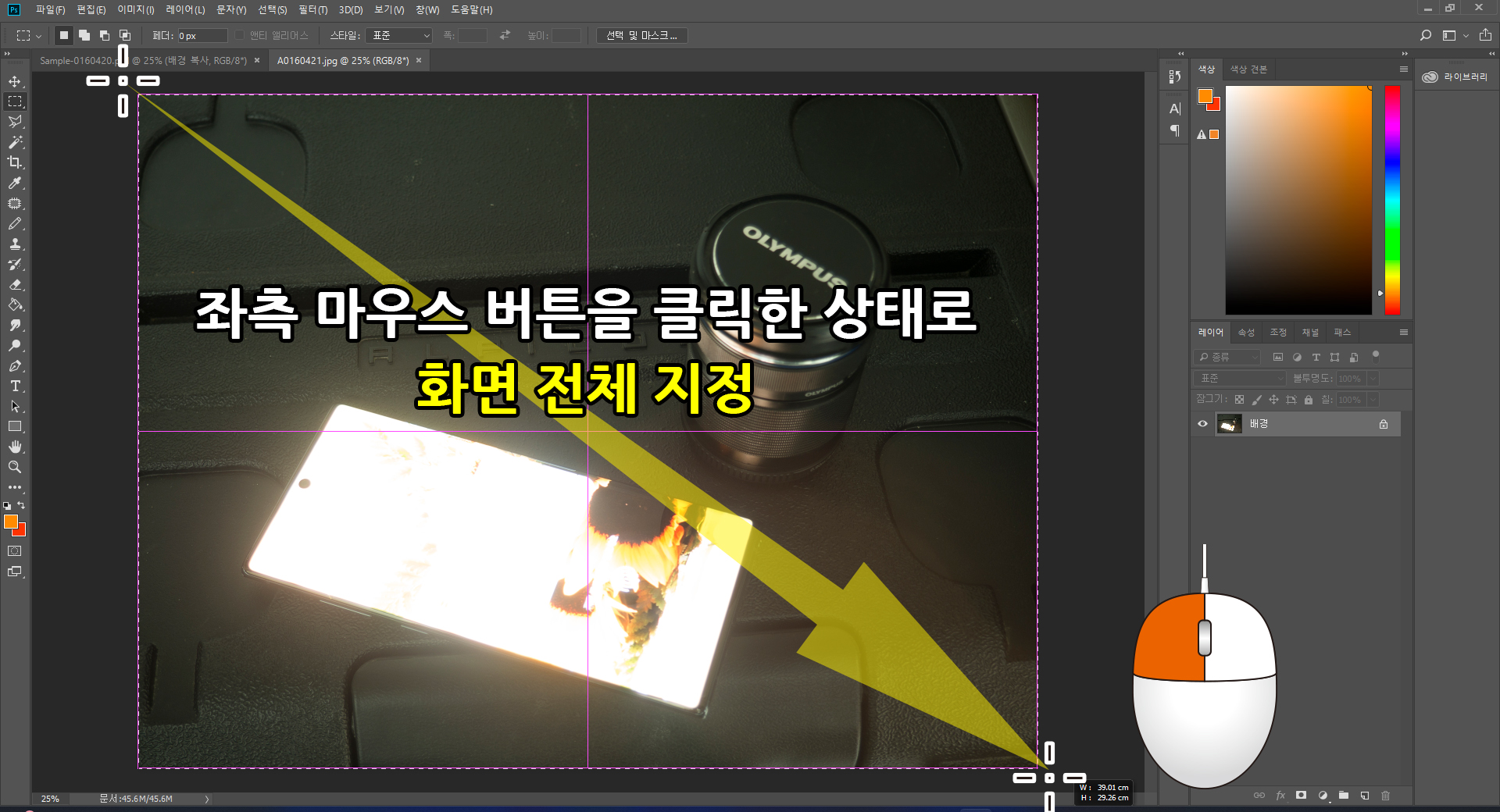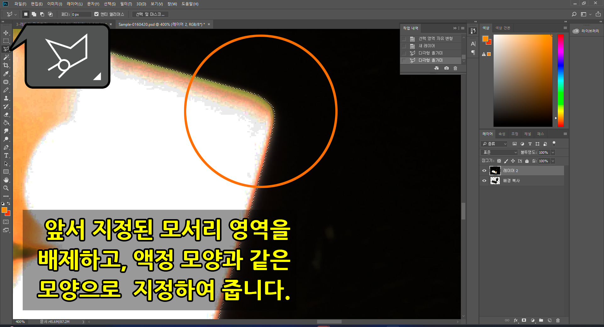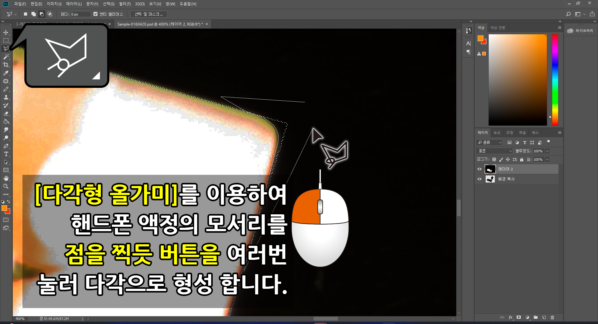 3. [사각 윤곽 도구]와 [다각형 올가미]를 이용한 액정 영역지정