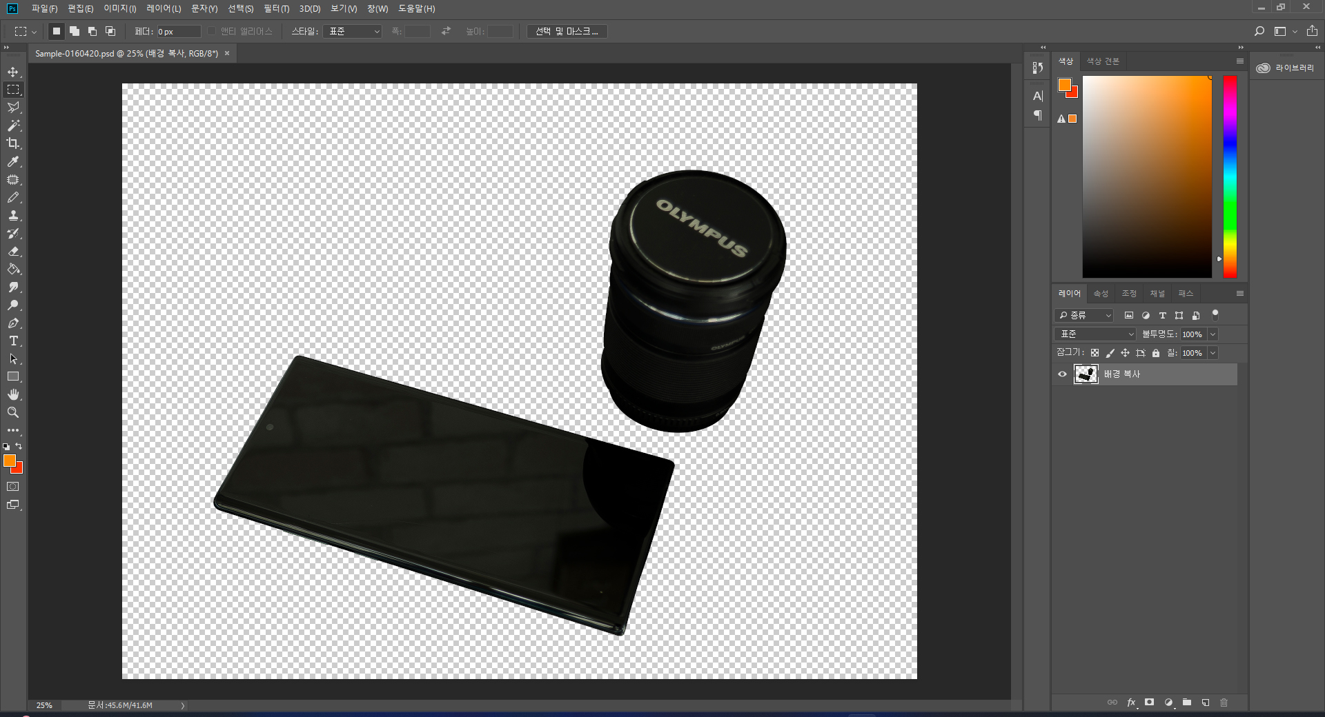 전 시간에 작업한 핸드폰과 카메라 렌즈가 보이는 png [파일창]을 확인할 수 있습니다.