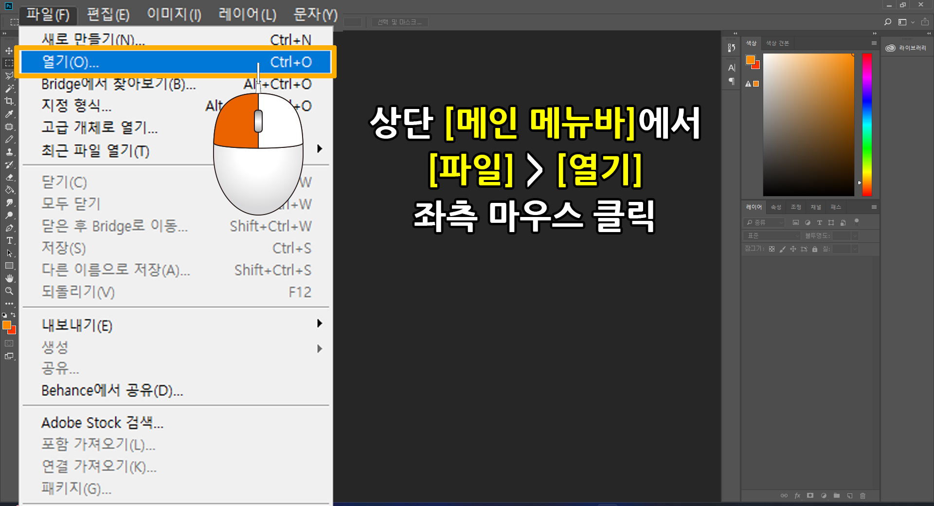 먼저 앞서 작업하고 저장한 파일을 엽니다.(불러오기에 대한 자세한 내용은 여기를 클릭하여 앞서 소개한 페이지를 참조 바랍니다.)