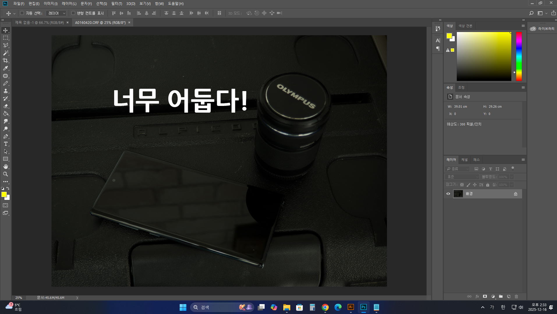 [ 버전은 달라도 포토샵의 기초와 원리는 변하지 않습니다! ] [1부] 기초 공사: "안 보이면 보이게 하라!" 파일을 불러옵니다.어! 이를 어쩌나? 너무 어두워 배경과 피사체 구분이 어렵네!이럴때 너무 당황하지 마세요! 세상은 요령으로 살아가는 겁니다. 예전에 군에 입대하고 이런 곳에서 어떻게 몇 년을 지내야 할지 갑갑했지만 시간이 지나 요령이 생기기 시작하니 큰 불편이 줄어들어 군생활도 할만하다 싶던 기억이 나네요! 요령 없이는 모든게 힘에 부치고, 시간은 한없이... 답답하게 느껴지기 마련입니다. 결국 경험이 요령을 만들고, 요령은 곧 해결책이 됩니다. 내가 너무 쉽게 말하나...? 근데 알고 나면 진짜 쉬워요...! 다른 작업자들도 저와 같이 하는지는 모르지만 저는 이런 문제를 아래의 내용과..